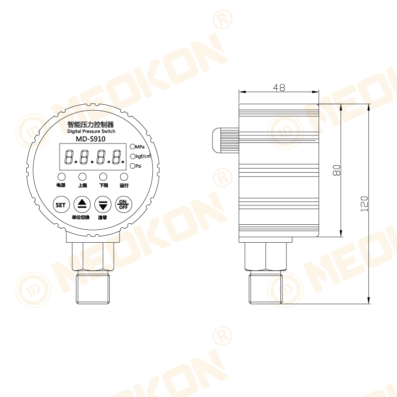 ?       MD-S910 是一款智能數(shù)顯壓力控制器,集壓力測量、顯示、控制于一體的智能控制儀表,具有操作簡單,抗震性好,控制精度高,控制范圍可任意調(diào)節(jié),使用壽命長等特點。